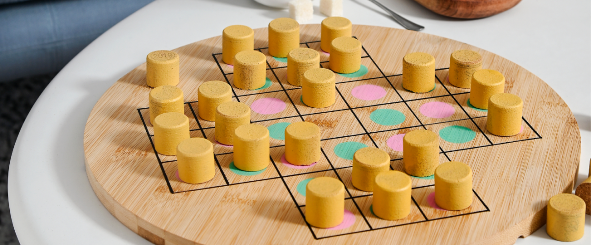 Quelques bouchons, une planche en bois, un peu de peinture et votre jeu du solitaire maison est prêt à prendre forme !