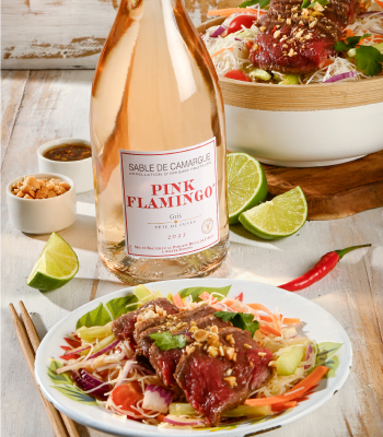 Pour rafraîchir le palais, on a sélectionné pour vous l’IGP(2) Sable de Camargue Pink Flamingo gris bio, à la bouche ample et généreuse.